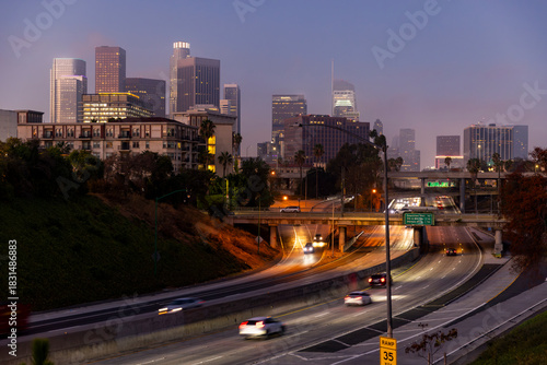 Los Angeles California city skyline sunrise