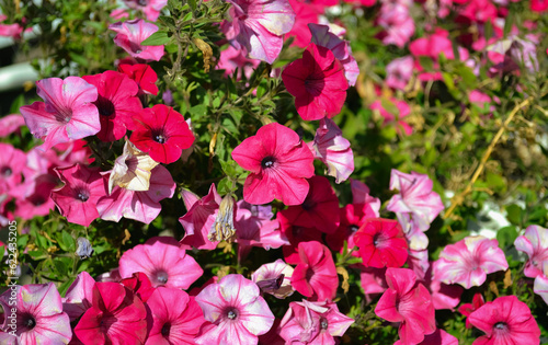 Lots of bright pink Petunia flowers in close-up