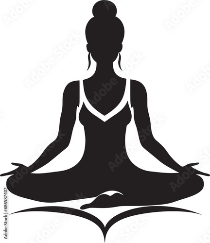 Lotus Luminary Black Yoga Woman Logo Design Tranquil Triad Yoga Woman Emblem in Vector