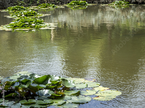 Lotus on the river in the park of the arboretum in Sochi