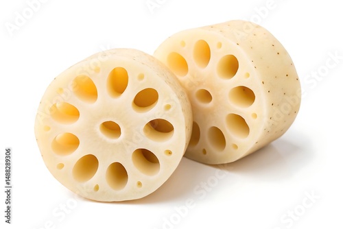 closeup, white background, fresh, root, vegetable, food, ingredient, asian cuisine, healthy, organic, natural, raw, nobody, still life, copy space, studio shot, detail, macro, produce, market, vegetarian, vegan, diet, alimentary, cooking, crunchy, edible, culinary, slice, pattern, unique, underwater, aquatic, delicate, texture, brown