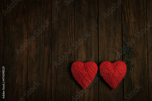 Love hearts on wooden texture background. Valentines day card concept. Heart for Valentines Day Background.