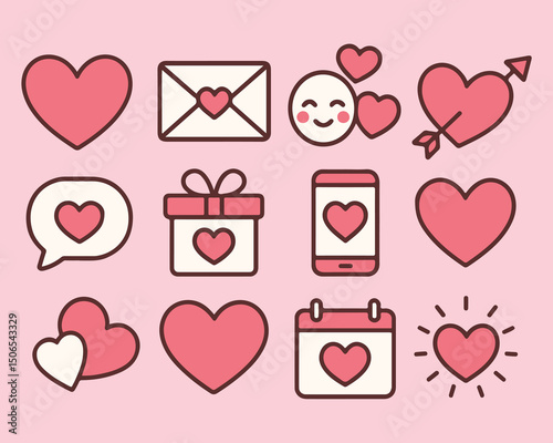 nubes, love, valentine, pink, vector, illustration, icon, day, card, symbol, heart, romance, design, holiday, shape, set, romantic, art, signs, decoration, pattern, letter, passion, greeting, red