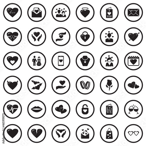 Love Icons. Black Flat Design In Circle. Vector Illustration.