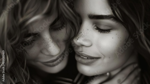 photo, black, white, cute, lesbian, couple, cuddle, pretty, intimate, passion, tender, partiality, lifestyle, photo, moment, monochrome, portrait, cherish, romantic, youthful, capture, together, happiness