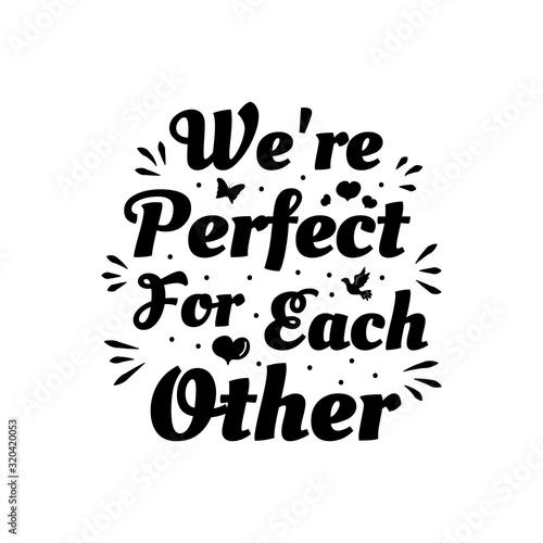Love phrase “We're perfect for each other“. Hand drawn typography poster. Romantic postcard. Love greeting cards vector illustration on white background