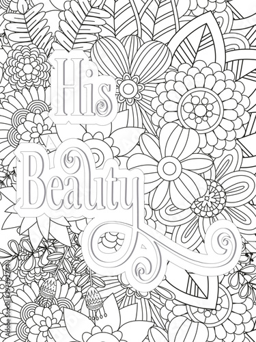 Love Quotes quotes Flower Coloring Page Beautiful black and white illustration for adult coloring book