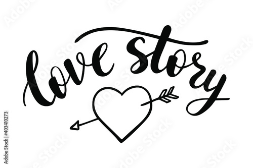Love story hand lettering with a doodle heart. St.Valentines Day vector for cards, banners, wrapping paper, posters, scrapbooking, pillow, cups and fabric design.
