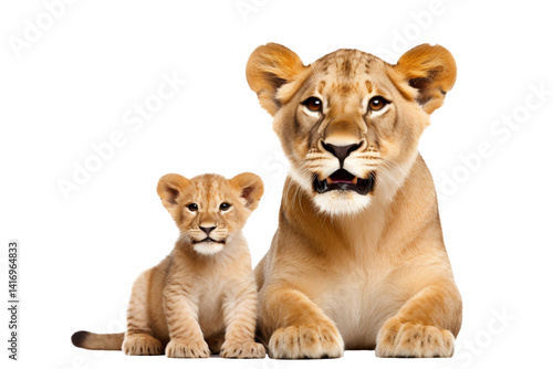 lovely mom lioness and baby lioness isolated on white