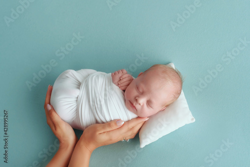 Lovely newborn resting on pillow. sleeping newborn baby boy