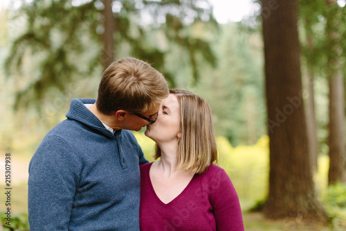 kiss, couple, wife, smooch, smiling, smile, portrait, eltern, loving, love, look, kissing, husband, happy, gaze, forest, october, fall, copy space, copy space, autumn, park, oregon, northwest, nature, green, wood, caucasian, white, man, male, person, people, adult, adult, 30s, grown-up, woman, female, lady