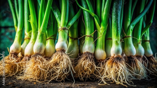 Low Light Closeup Photography: Organic Green Onion Roots - Macro Shot