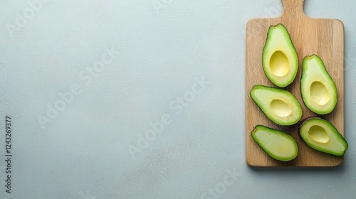 Low Sugar Fruits Good. Sliced avocados on a wooden board against a light background.