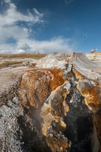 blue, geothermal, landscape, pool, scenic, sky, steam, thermal, us, wyoming, yellowstone