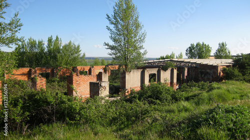 warehouse, nave, abandoned, neglected, broken, rase, forgotten, alone, alone, scrap, grass, tree, vegetation, nature, natural, wall, beam, wall, door, crack, cracked, graffiti, countryside, summer, heat, old, light