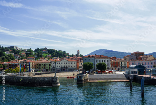 Luino, the beautiful town seen by tourists arriving by boat. Lake Maggiore, Italy
