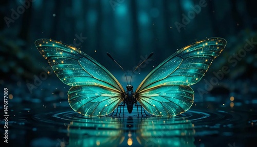 Luminous Butterfly at Twilight: A Hyperrealistic Enchanted Moment