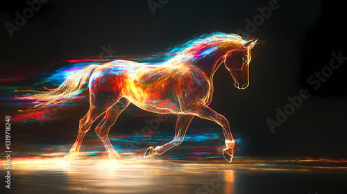 Luminous equine a dynamic digital of a glowing horse in motion. Vibrant Phosphor. Illustration