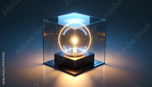 Luminous Orb Suspended in Crystal Clear Glass Cube