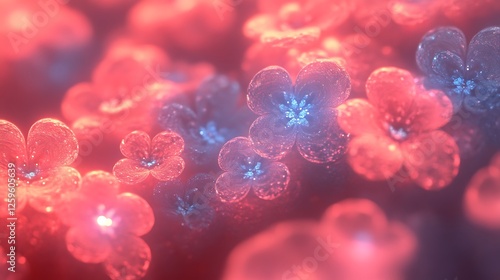 Luminous Red And Blue Glass Flowers Bloom