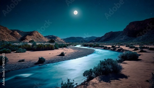 desert, river, oasis, water, nature, night, landscape, fog, mystery, surreal, dreamlike, fantasy, adventure, exploration, travel, journey, path, hope, life, survival, contrast, light, darkness, silence, calmness, peace, serenity, beauty, photo, art, tropical