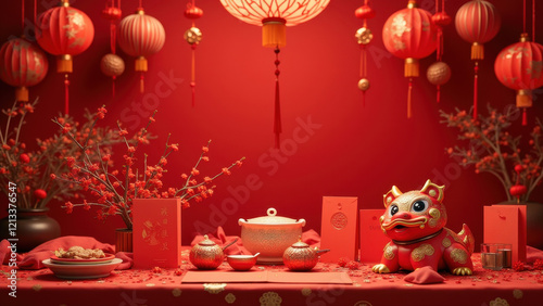 lunar new year, chinese new year, festive, table setting, decoration, lantern, red, gold, lucky, prosperity, tradition, culture, celebration, holiday, feast, family, togetherness, food, dish, chinese culture, asian culture, oriental, symbolism, abundance, happy new year, new year's eve, chinese food