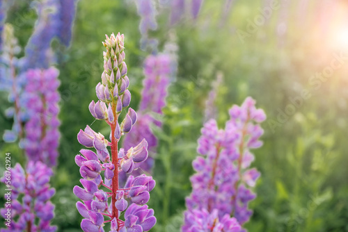 lupins in the field. beautiful pink flowers are blooming