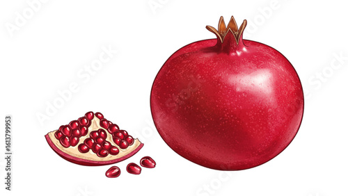 Luscious pomegranate fruit illustration, whole and sliced, perfect for healthy eating and wellness concepts