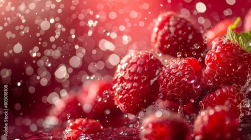 raspberry, deliciously, sparkling, water droplets, high-coloured, red background, fruit, fresh, juicy, organic, healthy, natural, diet, vegetarian, vegan, wellness, hydratation, culinary, cooking, ingredient, shiny, wet, glossy, bright, kitchen, epicure, tasty, market, seasonal, harvest, farm, botanical, environmentally friendly, sustainability, antioxidant, health, alimentary, food photography, vibrant color, ai, generative, lush, nature, texture, refreshing, delicious, clean