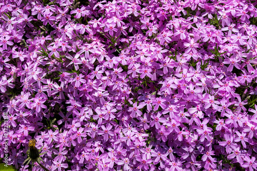 Lush carpet of pink flowers in a flower bed at the end of may.