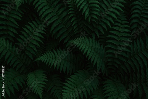 Lush green fern foliage patterned backdrop with natural dark green hues