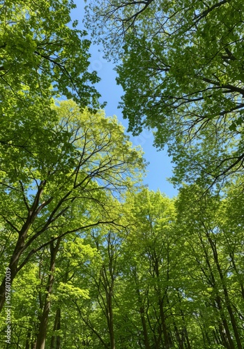 tree, forest, leaf, nature, green, sky, blue, summer, sunlight, canopy, foliage, branch, timberland, vegetation, daylight, environment, fresh, lush, bright, vibrant, overhead, perspective, looking, up, natural, scenic, view, beautiful, peaceful, tranquil, serene, calm, spring, ecology, ecosystem, flora, botanical, growth, life, habitat, landscape, upward, pathway, wood