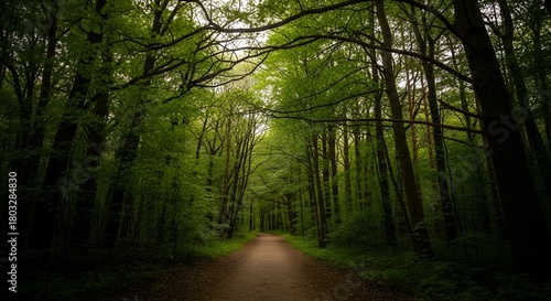 Lush green forest path a tranquil scene with tall trees perfect for nature backgrounds and travel inspiration