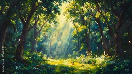 forest, nature, landscape, tree, light, green, leaf, foliage, sunlight, environment, scenic, serene, tranquil, idylli, peaceful, lush, grove, wood, pathway, trail, adventure, hiking, camping, meditation, relaxation, beauty, scenery, flora, natural, verdant, vibrant, magical, dreamy, aethereal, beam, beam of light, ray, sunshine, dappled, canopy, underbrush, mossy, fern, wildflower, clearing, trekking, exploring, wandering