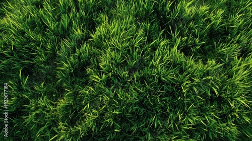 Lush green grass texture background, top view natural lawn pattern