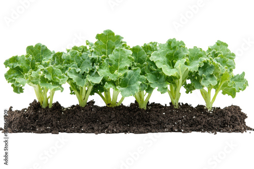 Lush green kale seedlings thriving in rich dark soil against a black background showcasing on transparent background