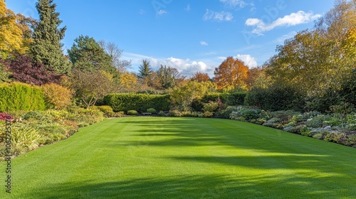 garden, lawn, greenery, tree, flower, landscape, nature, park, fall, sunlight, beautiful, serene, colourful, season, scenic, tranquil, leaf, sky, blue, vibrant, foliage, shrub, hedge, plant, growth, farming, environment, relaxation, peaceful, view, blossom, fresh, seasonal, idylli, sunshine, scenery, bright, earth, gardening, element, natural, rural, horizon, daylight, calmness, rich, expansive