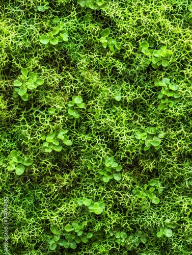 Lush Green Moss Background with Delicate Leafy Texture and Vibrant Freshness