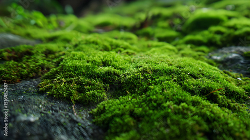 Lush green moss covering a rock surface creating a vibrant natural carpet texture image