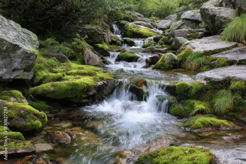 stream, water, moss, nature, rock, cascade, flow, green, lush, wild, forest, outdoors, natural, serene, peaceful, environment, landscape, geology, earth, movement, wet, cool, clear, refreshing, pure, vibrant, beauty, scenic, untouched, unspoiled, wilderness, riparian, babbling, creek, brook, mountain, stone, vegetation, growth, organic, tranquil, fresh, life, sunlight, shadow
