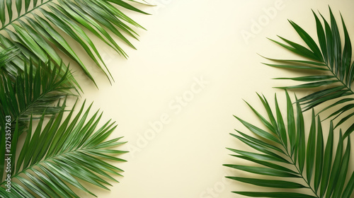 Lush green palm fronds forming a serene background, symbolizing the Palm Sunday celebration. Banner. Copy space