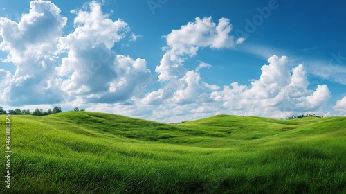 Lush Green Pasture Under Vibrant Blue Sky in Summer Serenity