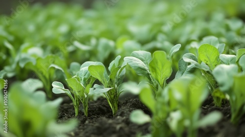 Lush green seedlings sprouting in rich soil, representing growth and vitality in a vibrant agricultural setting.