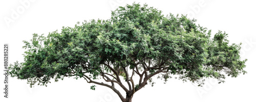 Lush green tree isolated on white background, showcasing the natural beauty and detailed structure of branches and leaves.