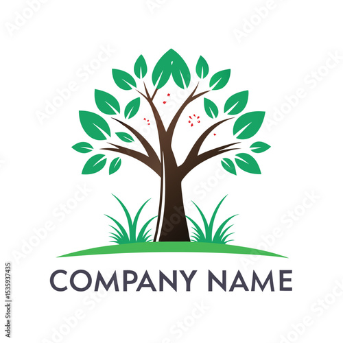 Lush green tree logo with grassy base, perfect for an environmental company