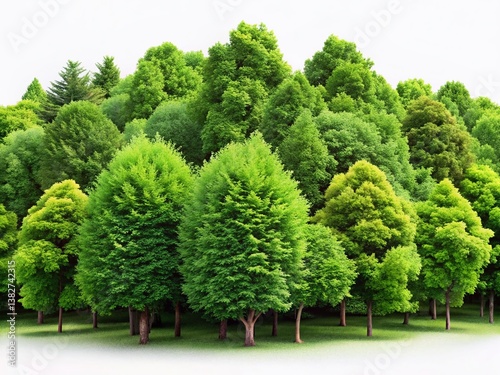 Lush Green Trees Panoramic Isolated White Background Nature Stock Photo