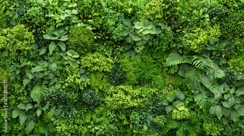 Lush green vertical garden wall; indoor plant background for design