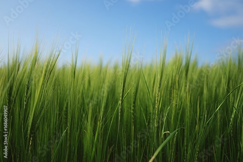 Lush Green Wheat Field Under Blue Sky - Summer Agriculture