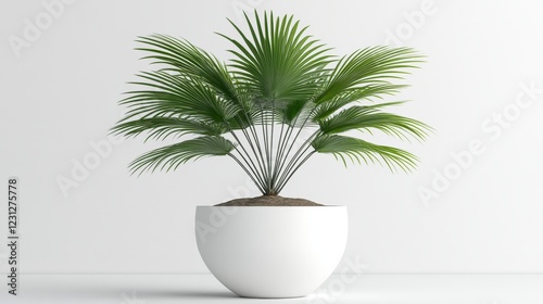 Lush Indoor Plant in Modern White Pot on Minimalist Background