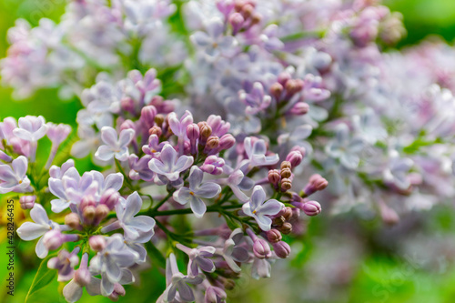 Lush lilac bushes blooming in spring